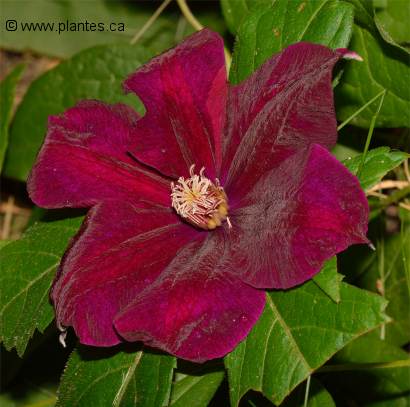 Clematis jackmanii Clématite jackmanii La clématite jackmanii est une plante grimpante vivace qui aime un plein ensoleillement ou mi-ombre, un sol bien drainé mais humide et riche. De groupe 3, la floraison tardive donne des fleurs en juin, juillet et août. Souvent utilisé pour cacher une clôture ou autre structure. Jusqu'à 3 mètres et plus de hauteur et un d'espacement. |